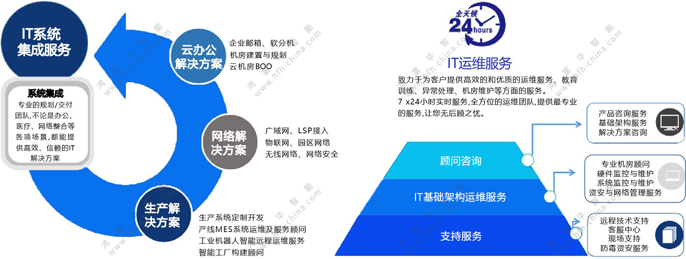 經驗豐富的IT系統集成服務團隊 , 為客戶提供軟硬產品、Project、BOO和SLA定制化服務,量身定制個性化IT解決方案,致力于為用戶提供最全面、專業的IT服務。