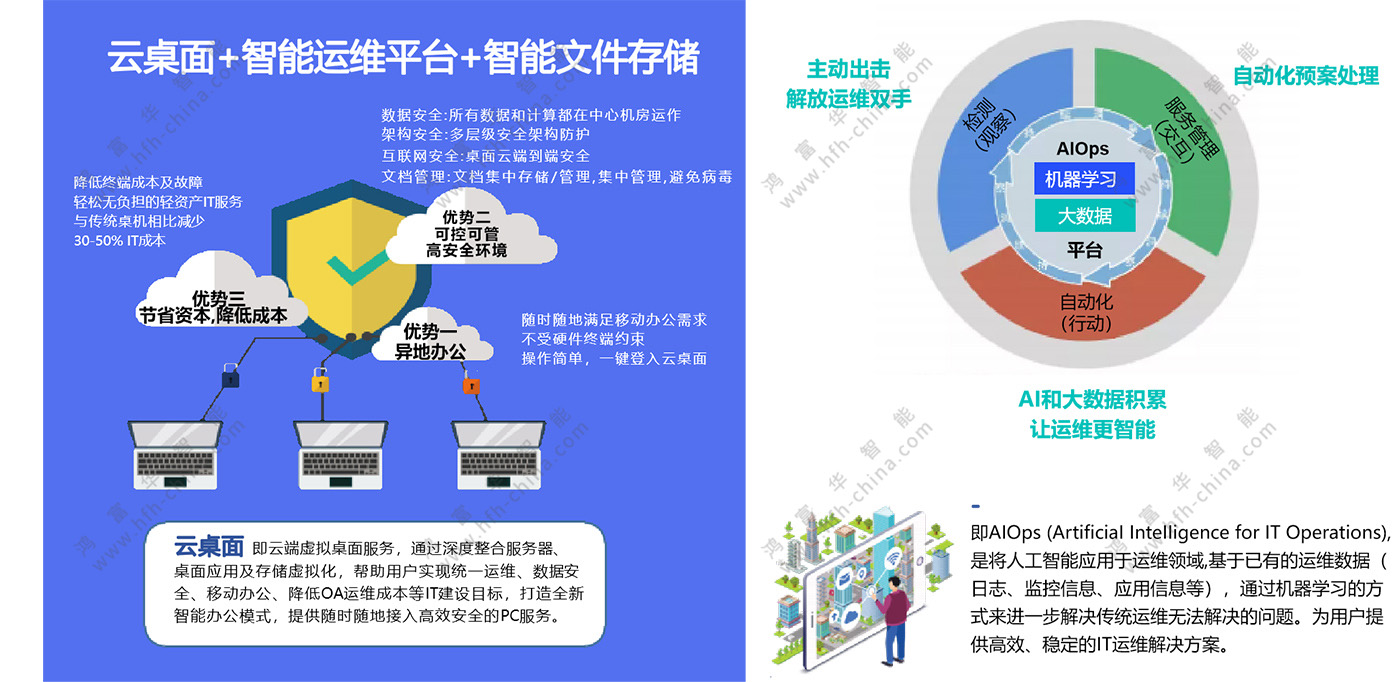 企業的需求: 1、按客戶提出的資安規范與預算需求,提供定制化混合云; 2、辦公規模巨大,各IT資產冗雜、產線多且分散、設備維護任務繁重。